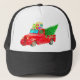 Det här är en vacker julbilsdesign i mönster.Rödrosa vintagar med julklappar och en julklapp i träd vid gräs vid tak.