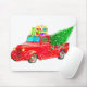 Det här är en vacker julbilsdesign i mönster.Rödrosa vintagar med julklappar och en julklapp i träd vid gräs vid tak.