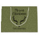 Cute helgdag-presentpåse med en renare och snöfall mönster på oliv grönt (färg kan anpassas) och manustypografi Merriest jul med anpassadets familj namn. Den här presenten som är viktig är ett perfekt för firande att sprida värme och glädje under festsäsongen. Klicka på "Anpassa den här mallen" om du vill lägga till anpassningsbarna eller om du vill ändra teckensnittet stil, storlek och färg efter behov. Jag kan gärna meddela mig om jag vill ha några frågor. Jag är lycklig för att hjälpa till!