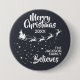 Visa hur mycket du tror på magin i jul och Jultomten med den här julfamiljen som matchar den röda knappen med silhuetten av jultomts slift i vitt med renarna, som flyger i en stjärnornas spår. Texten överst läser God jul i en vit handskriven skrift. Texten är lätt att anpassade med önskemål, år och familj namn eller företag namn. Med den här knappen får du perfekten jultillbehör för familjedagare och familjeåterföreningar eller kan användas som en del av en affärspersonals julutrustning