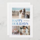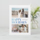 Det här 3-fotokortet visar Glad helg och har en enkel helgdagar i blå nyanser på vit bakgrund. Det har ett stort foto och två mindre foton finns på framsidan, med ytterligare ett foto på baksidan med utrymme för ett personligt hälsning.