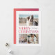 Det här 3-fotojulkortet har en enkel formeltyp i röda nyanser och rosa på vit bakgrund. Det har ett stort foto och två mindre foton finns på framsidan. Kortets baksida har en solid röd och rosa övertoning.