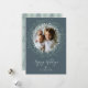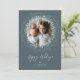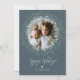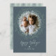 Helgdag-fotokort med en kraftig krans av löv och kvistar på en baksida av pewter-färgaden. Penselskriptkalligrafi lägger till ett klassbart tryck.