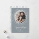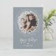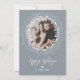 Helgdag-fotokort med en kraftig krans av löv och vrister på silver-färgadens bakgrund. Penselskriptkalligrafi lägger till ett klassbart tryck. Se till att du ersätter fotot med en egen bild. Besök www.instagram.com/arncyn för att se foton på min design processaa!