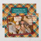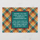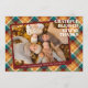 Unikt kort för helgdag av klass, trendig, söt och dekorativ Thanksgiving. Unikt kort för helgdag av klass, trendig, söt och dekorativ Thanksgiving. Cute GRATEFUL BLESSED GE THANKS-text och utrymme som du kan anpassa eller anpassa med ett foto och namn (eller namn i familjen) efter eget val. Med söt klassisk varm gult faller blommor från Morsa på en tealblått grönt, pumpa orange och mörk burgundy vin röd färgad, jordbruken inspirerade plaid tartan mönster bakgrundsdesign. Och ett anpassade hälsning dikt på baksidan av kortet.