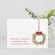 Röd Orange Berries Pinecones Business Card för Helgdag av julkrans. Utformningen har Happiest Helgdagar på kortets framsida och ett personlig-meddelande tillsammans med företaget namn på kortets baksida. Anpassa kortet genom att ändra namn. Om du vill ha fler anpassningar kan du kontakta mig på mypaperlove2021@gmail.com