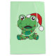 Grodan vid jul med ljus. Lungdjur med gåvor och snö för helgdagarna. En fin jul hälsning. Grodor är söta djur och perfekt till jul.