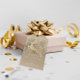 Helgdag av tillfällig personlig med chic som dekoreras med guldåterutgivare på den vita glasbakgrunden.