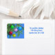 En söt juladressetikett med mina grönt-, röd-, blå-, rosa- och guld Julgran-prydnadsföremål hängande på träd grenar på blå bakgrund. Byt namn och returadress till din egen.