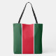 Den här skarpa, sportsliga designen har ett ljusrött centrum för lodrät rand, som har markerats med slender, vita ränder mot en djärv bakgrund för grönt av läger.