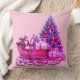 Vintage Rosa Sleigh Dekorativ kudde. Vintage God Jul Sleigh. Vintage med Presenter och Träd allt i Rosa Home Decor. Retro Rosa Sleigh.