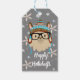 Den fina juldesignen har Hipster Llama med glasögon och vinterhatt redo för helgdagarna! Snöflingerbakgrund med det vita anpassadet "Glad helg"