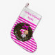 Inbegrip din helgdag med glädje genom att använda denna rosa och vita strimlade julstrumpor, personlig med hälsning "God jul! Angela." Den härliga designen omfattar en underbar flicka som sitter i en julandedräkt, åtföljd av en nalle och en nappar. Anpassa all text för att hedra minnet av din lilla "första jul 20XX!" - en keepé som fångar säsongens magi (ändra Xs till det år du vill ha).