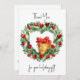 På framsidan av detta tackkort finns en vacker helgdag av grönt med en guld-hink fylld med röda hjärtan som är ordentligt inklämd i nedre högerna av julkransen. Framsidan av tackkortet är anpassadet med ditt tack för helgdag, inbjudan till party eller att tänka på dig och din familj över hela julhelgen. På baksidan av det här tackkortet i helgdag är haken i guld fylld med röda hjärtan i genomskinlig form med möjlighet att ytterligare anpassa ditt tack till helgdag, samt plats för din enskilda eller familjs namnteckning och datum för helgdagarna. Ta även bort de matchande kuverten för dessa. Visst att imponera! Njut! Designad av mw1designsart.
