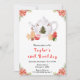 Den här eleganten och inbjudan till festfödelsedag innehåller en tekanna och kakor för gigderbröd. I hörnen finns vackra röda poinsettiablommor. Texten kombinerar handskript och sans serif typsnitt för en snyggt och ett modernt utseende. Det här är perfekt för en julbrunch eller te party.