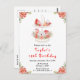 Den här eleganten och den här festdagen har en kaka med kakor, kakor, makaroner, godis, hett kakao och en tekanna. I hörnen finns vackra röda poinsettiablommor. Texten kombinerar handskript och sans serif typsnitt för en snyggt och ett modernt utseende. Det här är perfekt för en julbrunch eller te party.