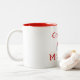 Kaffe mugg visas i vitt med rött insida, med en tomattryckning. I texten står det kakao för Clause. Anpassa mugg eller köp som det är.