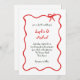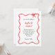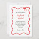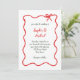 Den här bröllopsinbjudan för helgdag i chic och elegant innehåller ett rött hand plockade, vågigt illustrerat ram med en båge och handskript i snyggt och grönt på vit bakgrund. Perfekt för ett parisiskt eller Fransk stil bröllop under julsäsongen.