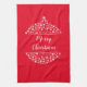 Den här kökshandduken visas i en prydnadsutskrift av festive helgdag snöflingor. Färg Red anpassar handduken eller köper den på det sätt som visas.
