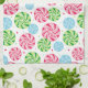 Helgdag kökshandduk visas i julgodis med snöflingor tryckt design. Anpassa det här objektet eller köp som det är.