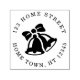 En cirkelformad självtryckande frimärke-personlig med klockor som omges av dina adress-uppgifter. Perfekt för att du har lagt till en handstämplad beröring i helgdagskorten med extra.