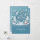 3D jultomten Hälsning Helgdag Card med en ljus bild av Jultomten med gräs träd, snöflingor och dekorerade presentboxar. Anpassa kortet med anpassningsbarna hälsning, familjen namn och året för personlig kontakt. Kortets baksida visar ditt hjärtliga budskap.