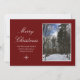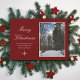 Julhälsningar på naturscenen i god jul, med en vinterscen i skogen efter att nyligen ha fallit i snö. Om du anger en röd bakgrund kan du anpassa med vitt skript. Du kan också lägga till ett eget foto om du väljer det. Ett fint kort för att skicka helgdag önskemål till dina vänner och familj.