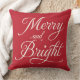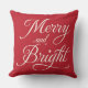Säsong-kuddedesignen har eleganten "Merry and Bright" med stjärnaccent och mönster med kardinalrött och mjukt vitt/lätt elfenben candy cane rand.
