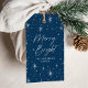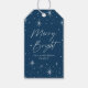 Elegant och moderna helgdag med märkre med "Merry and Bright" som visas i ett vitt, handskript som ramas av en gräns av vita stjärnor med marin bakgrund. Anpassa märkrna för merry och smart presenter genom att lägga till ditt namn.