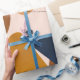 Den här helgdag av presenter har en målad bakgrund i skuggor av blekens rosa, dammblått, rost och flotta. Den här designen koordinerar med våra Ram-fotokort med målade Abstrakter. Se samordna objekt i samlingen!