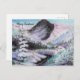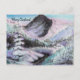 Ett helgdag-kort med vackert snö-bergslandskap i rosa-, blått- och lila-skuggor