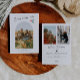 Vitaktigt och minimalt helgdag-fotokort med en vit båge ram med en skripttext som säger "skicka helgdag önskemål". Det finns också en illustration av en mistletoe. Du kan lägga till totalt 3 foton på det här kortet på framsidan och baksidan.