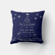 Denna söt helgdag vid kudden har fraser från säsong och hälsning i silver som formar Julgran. Orden är "Dekk the Halls", "Jingle Klockor", "Holly Jolly jul", "Vi önskar er ett god jul" och flera andra. Det finns en matchande silver-stjärna överst, och ornat silver snöflingor är splittrat. Silver bilder placeras i en mörk blått miljö. Båda sidorna av kudden har samma bakgrund och bild.