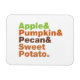 Äpple & Pumpkin & Pecan & Sweet Potato. Globe Trotters specialiserar sig på idiosynkratiskt bildmaterial från hela världen. Här hittar du unika hälsningskort, vykort, Poster, telefonväskor, stämplar, Mousepads och mycket annat.