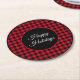 Dessa pappra underlägg är i rundan med ett rött och svart buffeltema. Glad helg är skrivet i mitten över svart, omgivet av buffelstöten. Anpassa de här underläggen eller köp som visas.