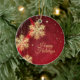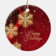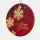 Julens Party ger Red Golden Snöflingor Helgdag Ceramic Ornament. Unik, vacker utformning av snyggten. Lätt att vara personlig. Teckensnittet stil, storlekt och färg kan ändras. Matchande objekt är tillgängliga.