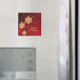 Julens Party Gift Red Golden Snöflingor Helgdag magnet. Unik, vacker utformning av snyggten. Lätt att vara personlig. Teckensnittet stil, storlekt och färg kan ändras. Matchande objekt är tillgängliga.