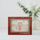 Ljusfotokortet i God jul har guldkonfekti glitter i en grönt ram på mörkens röda bakgrund. Lägg till fotot och njut av det.