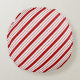 Den här runda formen dekorativ kudde visas med en söt julskrift på helgdag rand i candy cane.