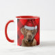Denna berömvärda hund i Chesapeake Bay Retriever bär en festive Santa hat och sitter mot en röd buffel helgdag som pläderas för en roligt helgdag mugg hundälskare och Chessie mammor i likhet med kärlek.