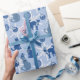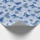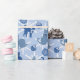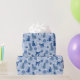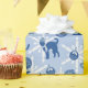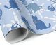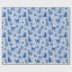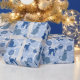 Gift som är papper med katt som bär vinterhalsdukar i blåtoner.