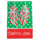 Den här söta presentsäcken har en röd julklapp och grönten har en rak skugga på en bakgrund av matchande grönt och vitt polka dots. Anpassa det ljusröda rand med namn och speciell helgdag på vardera sidan.