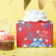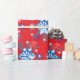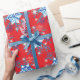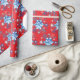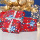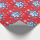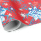 Helgdag, röd och blå snöflingor och stjärnor presentpapper