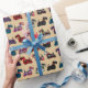 Hand plockade vattenfärgsformgivning på Scottish Terriers med pappra flugor.
