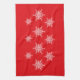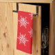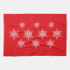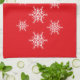 Helgdag kökshandduk visas med ett snöflingor- och festivt tryck. Anpassa det här objektet eller köp som det är.