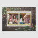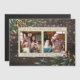 Detta magnetiska helgdag-kort är ett fantastisk alternativ till pappra inbjudningar som era vänner och familj är säkra på för kärlek! Den här utformningen har en vacker, mörk, rustik träbakgrund med ett känsligt snöflingtäcke. I de översta lämnat och grund-högernas hörn finns några handmålade festiva sprit med gräs-koner och bär. I mitten av kortet finns två kvadratiska bilder med delikat guld foil gräns med "vi önskar dig ett God jul" ovanför och "med kärlek från", och sedan din familj namn, under fotona.