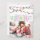 Det här moderna julfotokortet har flerfärgat helgdag string ljus och den populära frasen "Merry and Bright". Ta med ditt familjefoto för att anpassa kortet. Den perfekt som det är att skicka ett visstiskt, modernt helgdag till din familj och dina vänner.