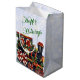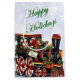 Medium-glossy-presentväska med en vintage på 1940-talet, på båda sidor, av en svart tåg-bil med pepparmyntgodis hjul, dekorerad med holly och fylld med julklappar på snöfall. En bifogad märkre lyder "Bästa Önskemål". "Glad helg" finns ovanför i gröntens skript. Se matchning av stor presentpåse, gratulationskort, pussel hälsning, förmånslåda, etikett, kvadratklistermärke, vinyldekal med anpassningsbar och papper förpackning. Visa hela Helgdag Gift Bag-samlingen i SPECIELLA TUUCHES | Avsnittet Party favors.