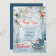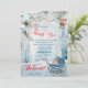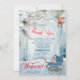 En ljusblå vinterbakgrund i snö och en böm med grönten Teal-leksaker och möjlighet att ersätta den typografiska texten när det är en pojke att tacka dina vänner med detta kort