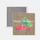 Bakgrund och vattenfärg för vintage röd lastbil som är utklistrad för helgdagarna med färskskskuren Julgranar. "Glad helg" i rustik teckenövertäckning